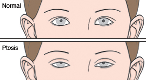 | Myasthenia gravis can cause symptoms such as droopy eyelids (ptosis). |