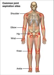Joint aspiration is most often done on the knee. But fluid can also be removed from other joints. These include the hip, ankle, shoulder, elbow, and wrist joints.