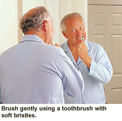 Your dentist may suggest that you follow an oral hygiene program at home. Use a toothbrush with soft bristles. If any roots are exposed, you may be asked to use a special toothpaste. This toothpaste makes teeth less sensitive. Your dentist may also suggest that you try a fluoride rinse or gel, or a desensitizing toothpaste. Cleaning all parts of your teeth and mouth helps prevent tooth sensitivity and decay.