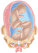 • The wrong position. The baby is facing feet or buttocks first (breech position). Or the baby is lying sideways across the pelvis.