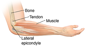 Tendons are strong bands of tissue that connect muscles to bones. Lateral epicondylitis affects the tendons that connect muscles in the forearm to the lateral epicondyle. This is the bony knob on the outer side of the elbow. The condition occurs if the extensor tendons of the wrist become painful and swollen (irritated). This can cause pain in the elbow, forearm, and wrist. Because the condition is sometimes caused by playing tennis, it's also called tennis elbow.