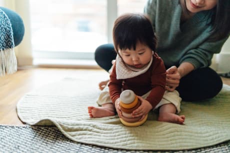 Closer to 9 months old, your baby may start getting into a sitting position on their own. They may start sitting without support.